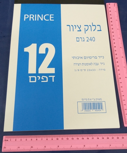 בלוק ציור קטן | בלוק ציור עבה | 240 גרם 23/33 ס"מ 12 דף , מוצר איכותי, לכל גיל, מגיע בשלל צבעים, מתאים למשחק ויצירה מהנה, גם להפתעות לימי הולדת, פרסים מיוחדים, מסיבות ימי הולדת ופרסים לתחרויות, סרגל מוצמד למוצר להמחשת הגודל, מחיר ליחידה אחת, מומלץ לילדים מעל גיל 3, המחירים המוצגים באתר הם מחירי סיטונאות והמחיר המוצג הוא מחיר לפני מע"מ. ניתן לראות עוד מוצרים בקישור : ציוד משרדי, וציוד לבית ספר