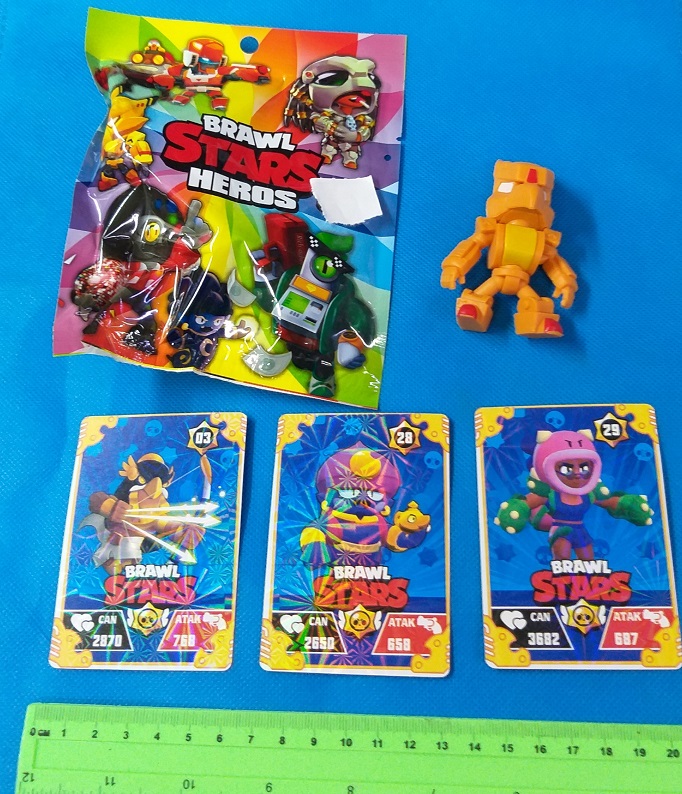בראול סטארס | בראול סטארס דמויות | בראול סטארס דמויות תמונות בשקית, מגיע עם דמות ו 3 קלפים, מגיע בשלל דוגמאות וצבעים, בחירת הדוגמא והצבע נעשית באופן אקראי, מתאים להפתעות לימי הולדת, צעצועים ופרסים מיוחדים, המחיר ליחידה אחת, מוצמד למוצר סרגל של 30 ס"מ להמחשת הגודל, המחירים המופיעים באתר הם מחירים סיטונאים והמחיר המוצג באתר הוא ללא מע"מ, ניתן לראות את כל מבחר ההפתעות בקטגוריה בקישור: הפתעות ליום הולדת