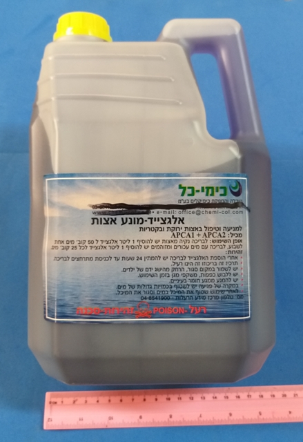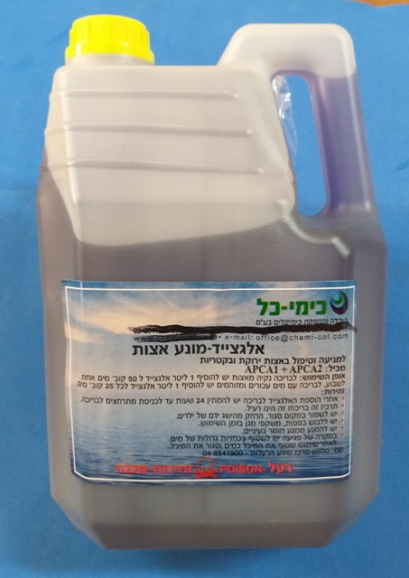 חומר לבריכה אלגציד 4 ליטר | אלגציד לבריכה | חומר נגד אצות לבריכה, חומר חובה לבריכה למניעה וטיפול באצות ירוקות ובקטריות, מכיל APCA2 + APCA1 ,אופן השימוש :לבריכה נקיה מאצות יש להוסיף 1 ליטר אלגצייד על 50 קוב מים , ( זהירות אחרי הוספת האלגצייד לבריכה יש להמתין 24 שעות עד כניסת המתרחצים } , ( חומר זה בריכוזו זה הינו רעל ) יש לשמור במקום סגור הרחק מהישג ידם של ילדים, יש ללבוש כפפות ומשקפי מגן בזמן השימוש. במקרה של פגיעה יש לשטוף בכמות גדולה של מים, מס טלפון של מרכז מידע הרעלות 048541900 . אצלנו תוכלו לרכוש מגוון מוצרי חוף ובריכה מיוחדים החל מכל סוגי המתנפחים ועד דלי לים ומטקות, המחירים המוצגים באתר הם מחירי סיטונאות והמחיר המוצג הוא מחיר לפני מע"מ. ניתן לראות עוד מוצרים באתר בקישור : מתנפחים לבריכה