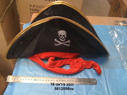 כובע פיראט בד מפואר | כובע פיראט לפורים | פיראט תחפושת לפורים, חומר איכותי, מתאים לתחפושת מיוחדת, קרנבלים, להפעלות יום הולדת, מסיבות פיראטים, מוצמד למוצר סרגל של 30 ס"מ להמחשת הגודל, המחירים המופיעים באתר הם מחירים סיטונאים והמחיר המוצג באתר הוא ללא מע"מ, ניתן לראות את כל המוצרים באתר בקישור : פורים | אביזרים לפורים | תחפושות לפורים | מסכות לפורים