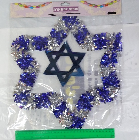 מגן דויד לתלייה | מגן דויד לקישוט | גודל ענק כ35 ס"מ, קישוט מקורי לקישוט הסוכה ולחוויה של קישוט הסוכה עם המשפחה, מוצר איכותי, מגיע בשלל צבעים ודוגמאות, בחירת הצבע והדוגמא נעשית באופן אקראי, מתאים לקישוטים לסוכה, אביזר קישוט ליום העצמאות, קישוטים למסיבות, אביזרים למסיבות, חתונה מסיבת רווקות, מסיבות ימי הולדת ואירועים במועדונים, סרגל מוצמד למוצר להמחשת הגודל, מחיר ליחידה אחת, המחירים המוצגים באתר הם מחירי סיטונאות והמחיר המוצג הוא מחיר לפני מע"מ. ניתן לראות עוד דוגמאות באתר בקישור : קישוטים לסוכה