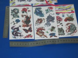 מדבקות קעקועים | הפתעות ליום הולדת, לכל גיל, מגיע בשלל צבעים ודוגמאות, בחירת הצבע והדוגמא נעשית באופן אקראי, מתאים להפתעות לימי הולדת, פרסים מיוחדים, מסיבות ימי הולדת ופרסים לתחרויות, סרגל מוצמד למוצר להמחשת הגודל, מחיר ליחידה אחת, מומלץ לילדים מעל גיל 3, המחירים המוצגים באתר הם מחירי סיטונאות והמחיר המוצג הוא מחיר לפני מע"מ. ניתן לראות עוד מוצרים באתר בקישור : הפתעות ליום הולדת
