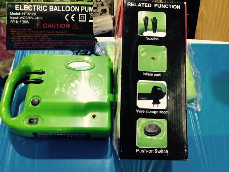 משאבה לבלוני נקניק חשמלית, מקצועית, מנפח בלוני נקניק, הפעלה קלה בלחיצה או בהפעלה קבועה, מתאים לבלוני נקניק וכל סוגי הבלונים, מוצר איכותי, המחיר מתייחס ליחידה אחת, קיים גם כל סוגי הבלונים בסיטונאות, משאבות בלונים לבלוני צורות ומשאבות בלונים ידניות, המחירים המופיעים באתר הם מחירים סיטונאים והמחיר המוצג באתר הוא ללא מע"מ, ניתן לראות את כל המבחר, בקטגוריה בקישור הבא : בלונים בסיטונאות