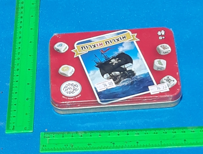 משחק אוצרות או צרות, כל שחקן בתורו מקבל את תפקיד הקברניט של ספינת הפיראטים ויוצא להשיג אוצרות. לפני שהוא יוצא לדרך, עליו לפתוח קלף גורל שעשוי להשפיע על החלטותיו. המשחק מתנהל בהטלת קוביות בניסיון ליצור הרכבים יקרי ערך. בדרכו, על השחקן להעריך סיכויים, ליטול סיכונים ולקבל החלטות נועזות. במיוחד עליו להיזהר שלא לצבור שלוש גולגולות כי אז ייפסל ויסיים את תורו בידיים ריקות. בפנים מחכה לכם: 8 קוביות משחק, 35 קלפי גורל, קלף ניקוד, והוראות משחק, מוצר איכותי, לכל גיל, מגיע בשלל צבעים ודוגמאות, בחירת הצבע והדוגמא נעשית באופן אקראי, מתאים להפתעות לימי הולדת, פרסים מיוחדים, מסיבות ימי הולדת ופרסים לתחרויות, סרגל מוצמד למוצר להמחשת הגודל, מחיר ליחידה אחת, המחירים המוצגים באתר הם מחירי סיטונאות והמחיר המוצג הוא מחיר לפני מע"מ. ניתן לראות עוד מוצרים באתר בקישור : צעצועים בסיטונאות