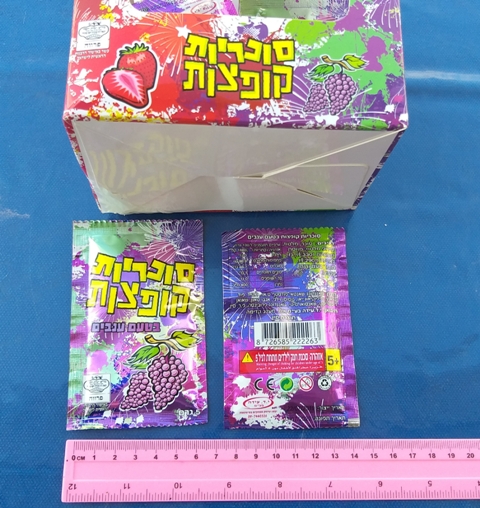 סוכריות קופצות | סוכריות מתפוצצות, מבחר ענק של טעמים וצבעים, בחירת הטעם והצבע נעשית באופן אקרעי, מתאים לימי הולדת, בר מתוקים, מתאים למילוי פניאטה שניתן להזמין באתר, כל הממתקים המופיעים באתר הם עם כשרות המצוינת על גבי האריזה,מחיר ליחידה אחת, סרגל באורך 30 ס"מ מוצמד למוצר להמחשת הגודל, המוצר מופיע בקטגוריה ממתקים, המחירים סיטונאים והמחיר שמוצג באתר הוא ללא מע"מ, ניתן לראות עוד מוצרים באתר בקישור : ממתקים בסיטונאות