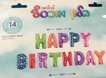 סט בלונים צבעוני HAPPY BIRTHDAY, אותיות בלונים, למילוי באוויר, להדבקה, או לתלייה, גודל 14 אינצ', כ30-40 ס"מ כל אות, ניפוח על ידי קש עם שסתום על חזור, מוצר איכותי, מגיע בשלל צבעים, המחיר מתייחס ליחידה אחת, בחירת הצבע נעשית באתר, קיים גם כל סוגי הבלונים בסיטונאות, משאבות בלונים לבלוני צורות ומשאבות בלונים ידניות, המחירים המופיעים באתר הם מחירים סיטונאים והמחיר המוצג באתר הוא ללא מע"מ, ניתן לראות את כל המבחר, בקטגוריה בקישור הבא : בלונים בסיטונאות