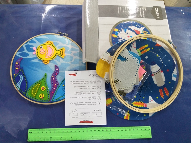 ערכה ליצירה תמונה מלבד | סט תפירה תמונת לבד גדול, יצירה מהנה ומיוחדת, הערכה מכילה תמונה לרקמה, חתיכות לבד לרקמה , חוטים ומחט, ומסגרת למתיחת התמונה מוצר איכותי, מבחר אדיר של דוגמאות וצבעים, בחירת הדוגמה והצבע נעשית באופן אקראי, מתאים ליצירות כמתנה מיוחדת, כצעצוע, פרסים מיוחדים ומסיבות ימי הולדת, סרגל מוצמד למוצר להמחשת הגודל, מחיר ליחידה אחת, מומלץ לילדים מעל גיל 3, המחירים באתר הם מחירים סיטונאים והמחיר המוצג הוא לפני מע"מ, ניתן לראות עוד מוצרים בקישור : יצירה וחומרי יצירה