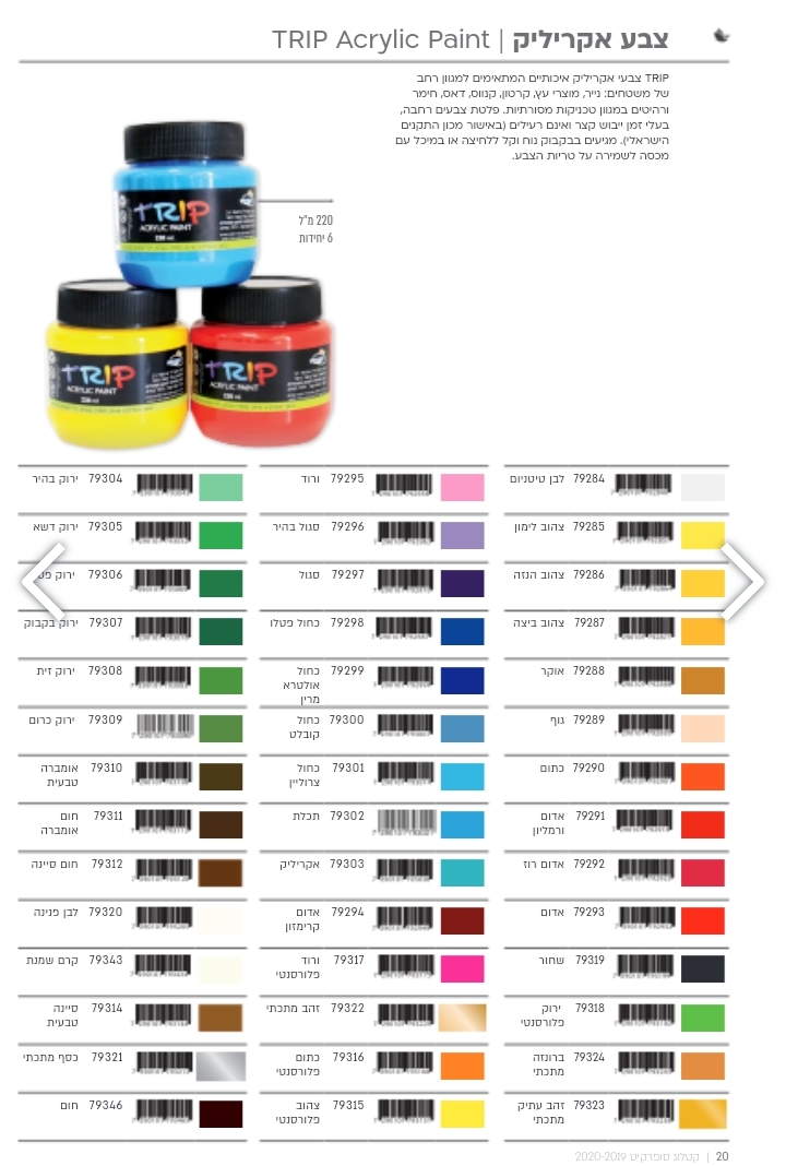 צבעים אקריליים | צבעי אקריליק 220 מל | צבע אקרילי TRIP