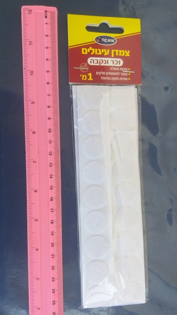 צמדן עיגולים אורך מטר | צמדן (סקוטש) זכר ונקבה,  איכותי ובטוח , מוצר איכותי, לכל גיל, מגיע באורך מטר, מתאים ליצירה תפירה והצמדת משטחים, סרגל מוצמד למוצר להמחשת הגודל, מחיר ליחידה אחת, מומלץ לילדים מעל גיל 3, המחירים המוצגים באתר הם מחירי סיטונאות והמחיר המוצג הוא מחיר לפני מע"מ. ניתן לראות עוד מוצרים דומים בקישור: יצירה וחומרי יצירה
