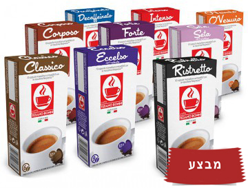 קפסולות תואמת נספרסו | מארז מעורב טעמים לבחירה, של המותג האיטלקי קפה BONINI הידוע בתערובות הקפה הטובות בעולם שמככבות ברוב בתי הנסיכויות בעולם, מארז מעורב טעמים לבחירה, ניתן לקבל מארז מעורב טעמים או לבחור את הטעמים שרוצים ברישום בהערות או כאשר נציג החברה חוזר לאשר את ההזמנה, מתאים לרוב מכונות נספרסו, במחירי היבואן ובמחיר סיטונאי, המחירים המוצגים באתר הם ללא מע"מ וללא משלוח, ניתן לראות עוד דוגמאות באתר בקישור : קפסולות נספרסו